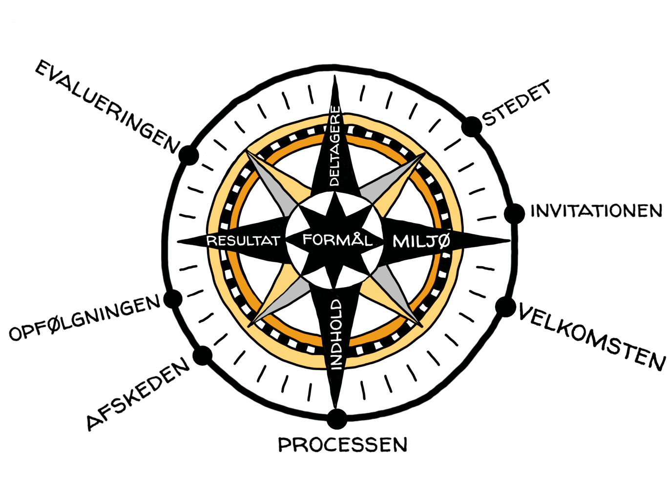 Arrangementskompasset kan både bruges som afsæt for en temadag eller workshop og købes som hæfte i webshoppen.