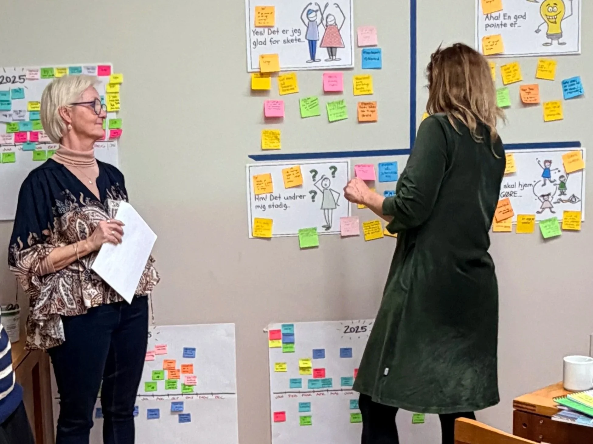 Ofte udvikler jeg også visuelle skabeloner eller enkle greb, der støtter refleksion, gruppedrøftelser og fælles forståelse. Det visuelle er ikke et mål i sig selv, men et redskab, når det kan hjælpe processen.